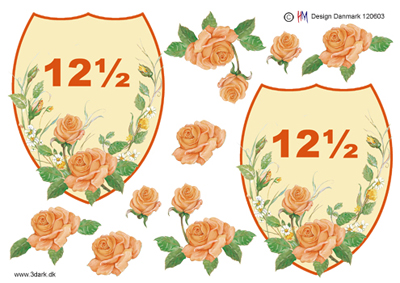 Stor skjold med lysebrun rose og 12,5 år, HM design